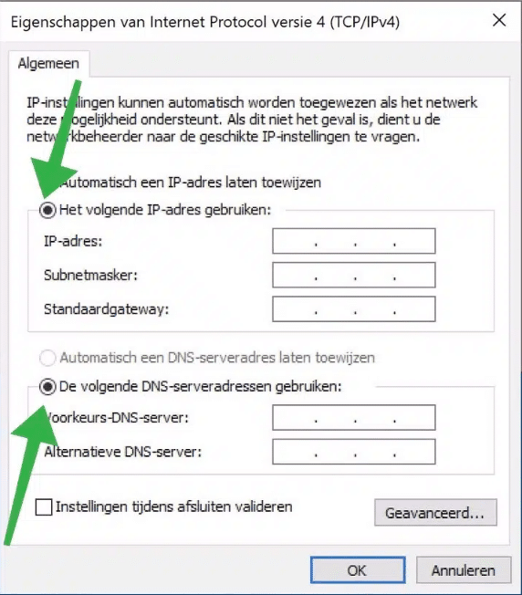 6. Selecteer hier Privaat.
